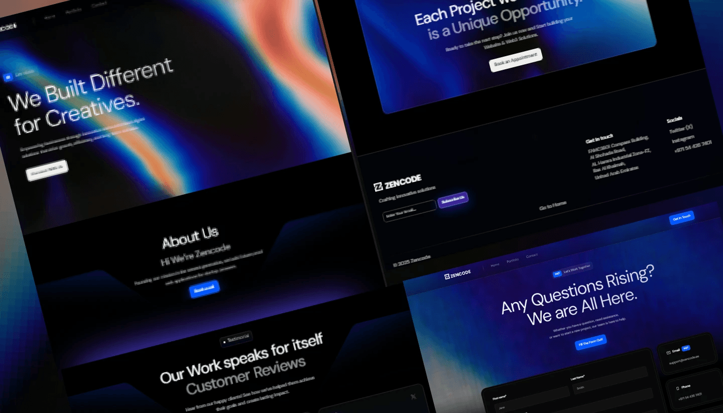 This project was centered around designing Zencode’s brand presence across both light and dark themes. The visuals emphasize contrast between noise and clarity, glitch and structure mirroring the agency’s mission to bring order to the experimental nature of Web3 development. From SaaS solutions to startup MVPs, the site showcases Zencode’s ability to deliver both design and code.